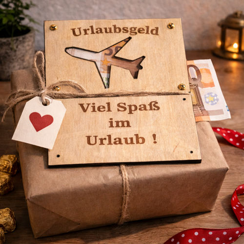 Geldgeschenk Urlaub aus Holz – personalisierte Urlaubsgeld Karte mit Gravur | Reise Gutschein Geschenk