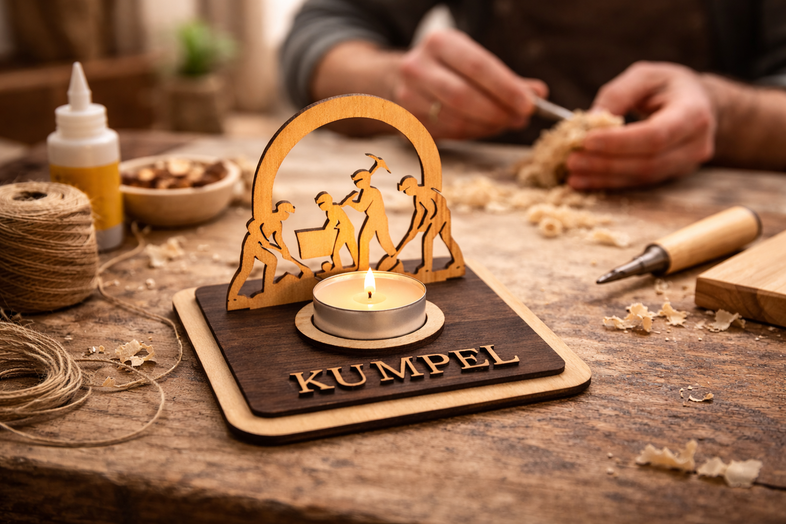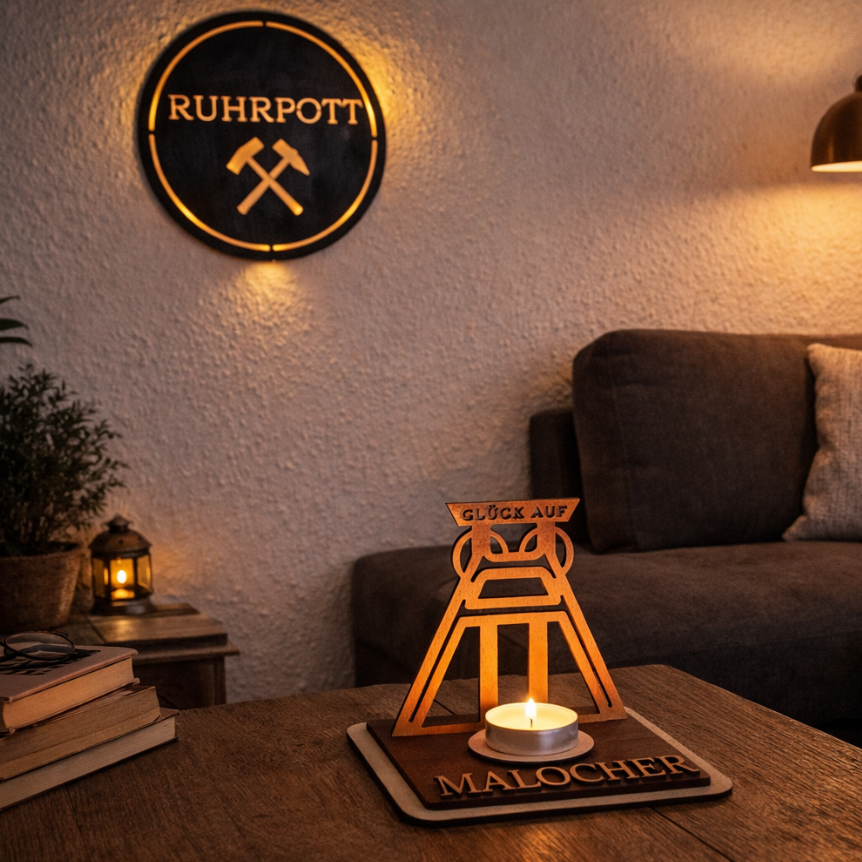 Teelichthalter Bergleute aus Holz – Ruhrpott Deko mit Name – Geschenk für Malocher & Bergbau-Fans